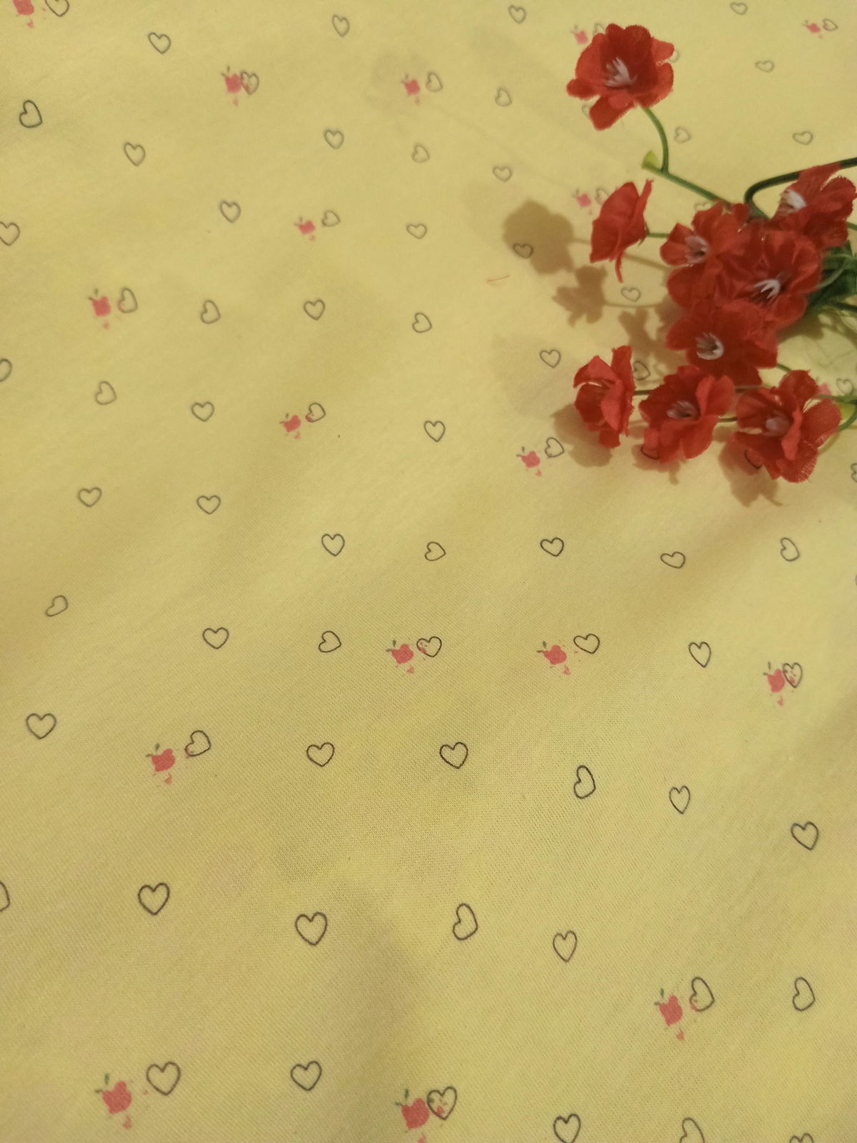 Algodón con lycra "corazón con flor F amarillo"