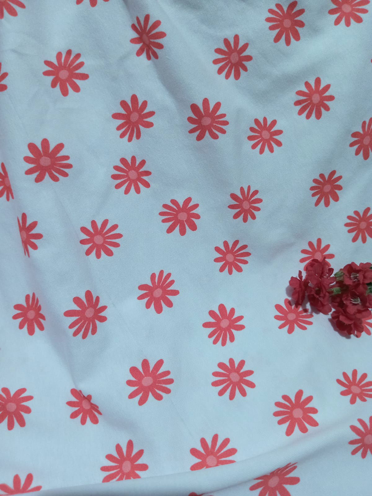 Algodón con lycra "Margaritas grandes rojas" fondo blanco